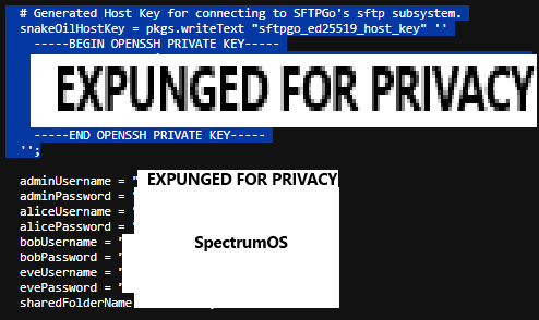 Hi, thanks for your concern, but this is not an issue. Note that the key you have found is inside a directory called "tests" in Nixpkgs, and is named "snake oil". It is a test fixture, not a key that controls access to anything outside of that test. I imagine by now you'll have found that this key exists in many places across the web, wherever there are copies of Nixpkgs. The enthusiasm is nice, but please make sure to check thoroughly before reporting security issues — not every instance of a pattern is automatically an issue, and if it looks like you haven't done this checking, your reports are likely to be seen as spam after all. Maintainers are frequently burdened with people submitting reports from automated security scanners that are not identifying real issues, and are quite likely to filter out anything that looks like that. Good luck with your course!